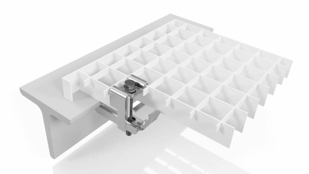 Arrondierte Winkel 20 x 10 x 2 mm werden in die Tragstäbe eingepresst, sodass ein problemloses Begehen auch ohne Schuhwerk möglich ist.